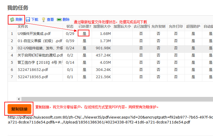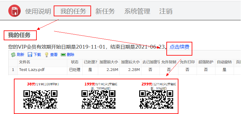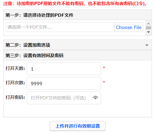 2、通过“新任务”页面上传PDF文件,并设置加密选项